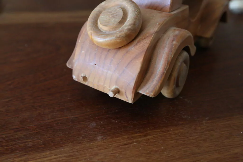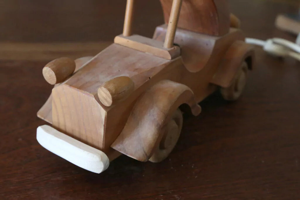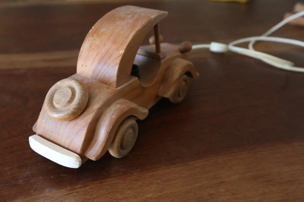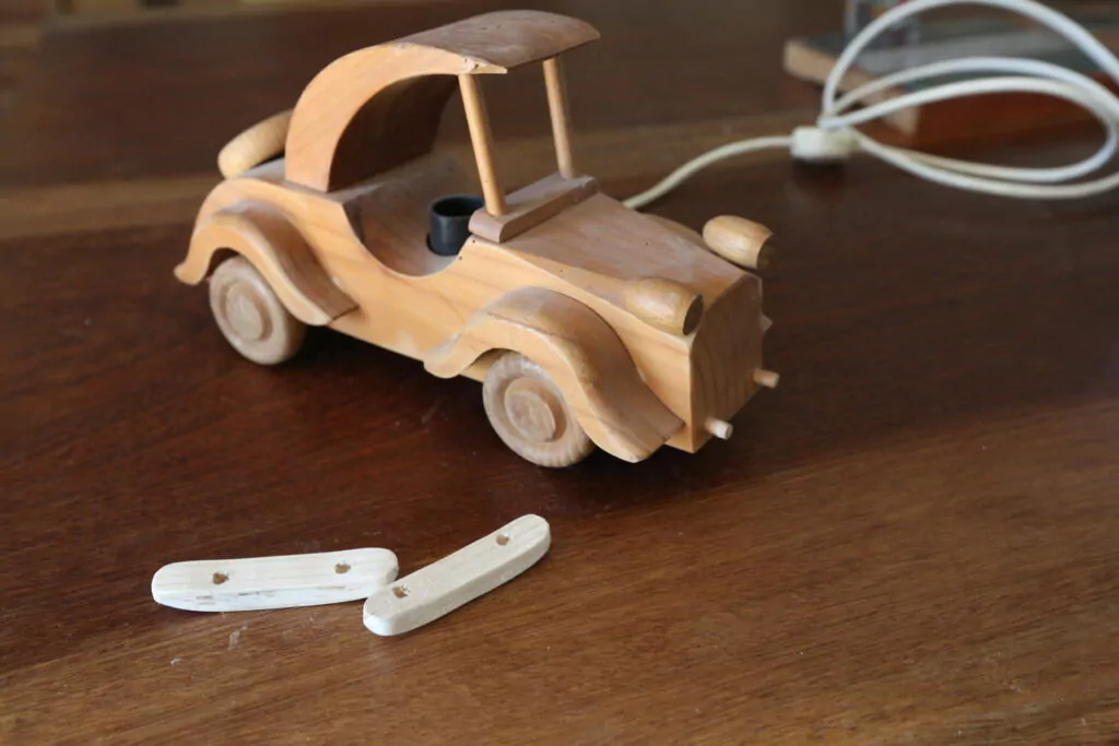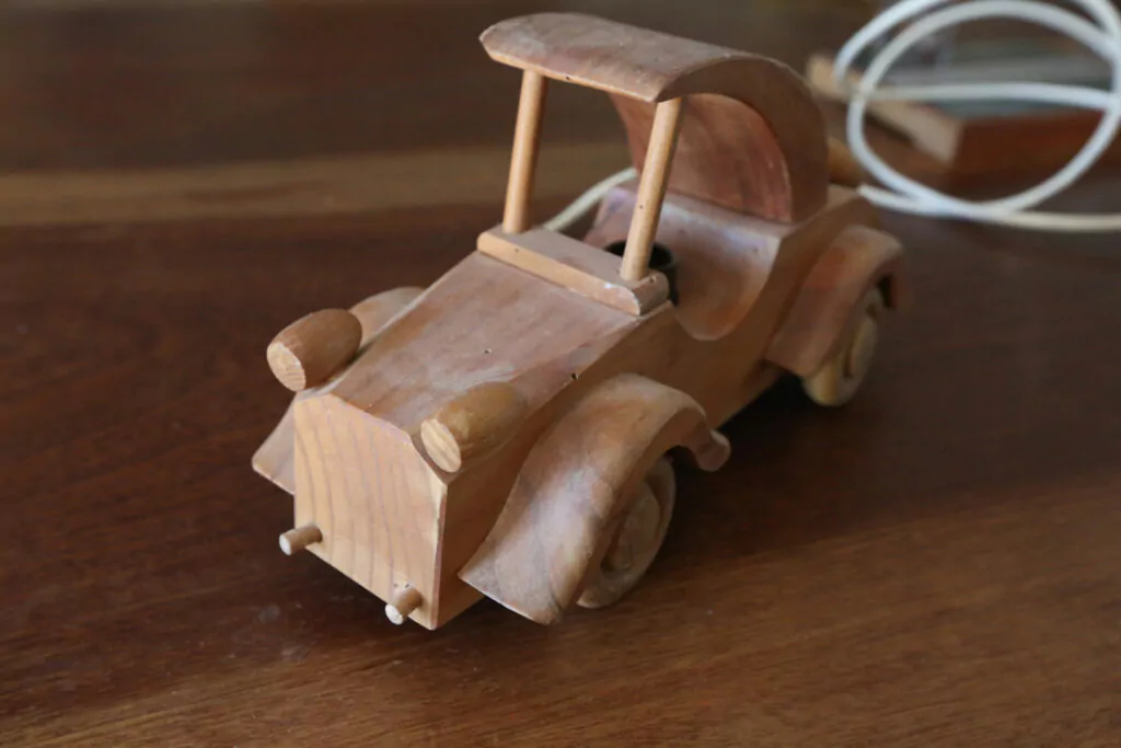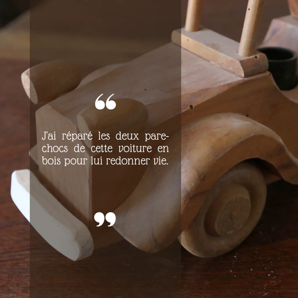J’ai récemment eu le plaisir de redonner vie à un objet plein de souvenirs : une petite voiture en bois… qui fait aussi lampe 🚗💡